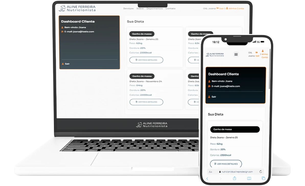 Todas as nossas clientes contam com sua área do cliente exclusiva para ver toda sua dieta e acompanhamento.